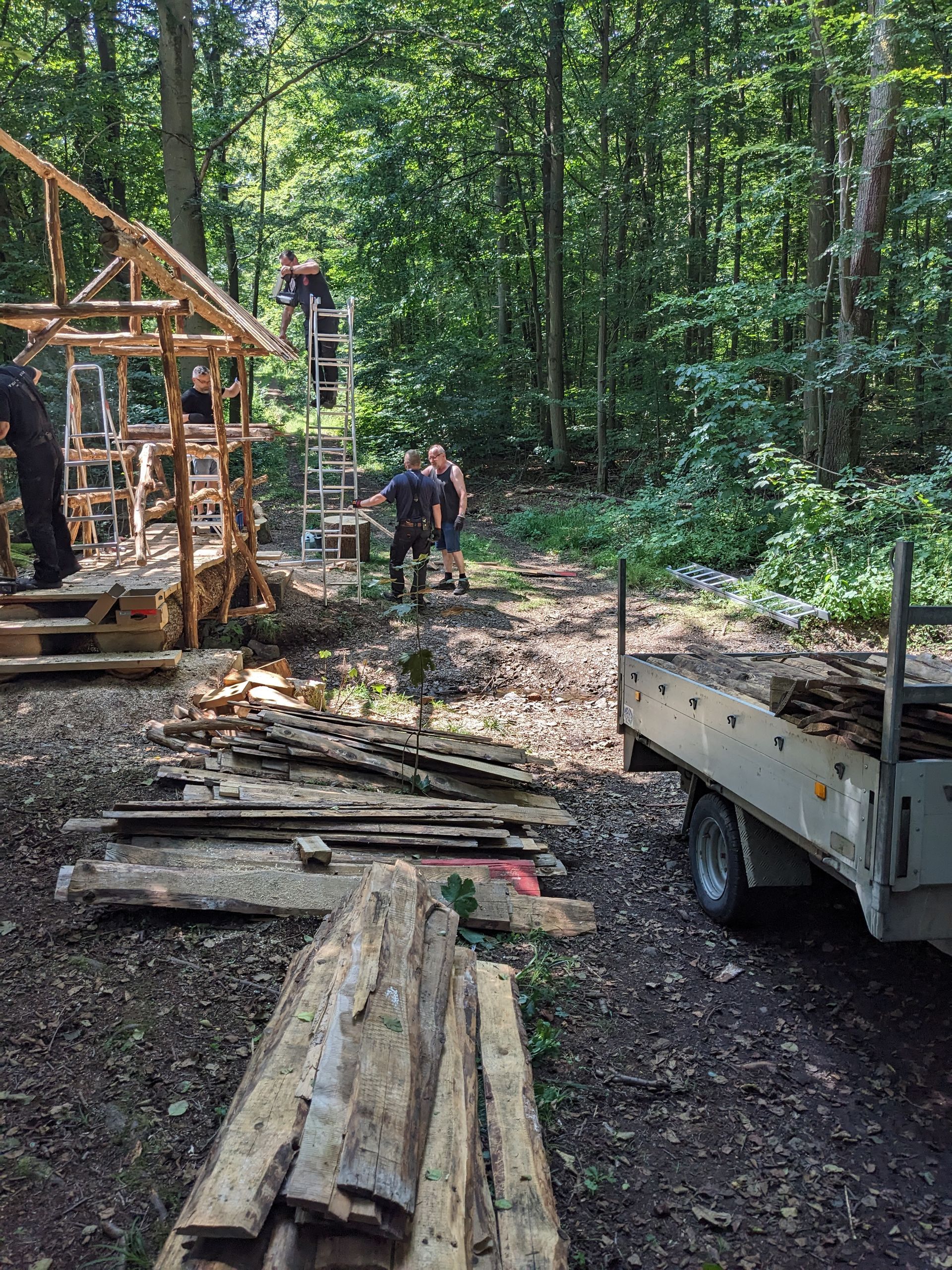 - Die Schwarten für die Sanierung der Thiele Köthe sowie das restliche Bauholz für den Freisitz haben wir von Firma Bosse geholt.